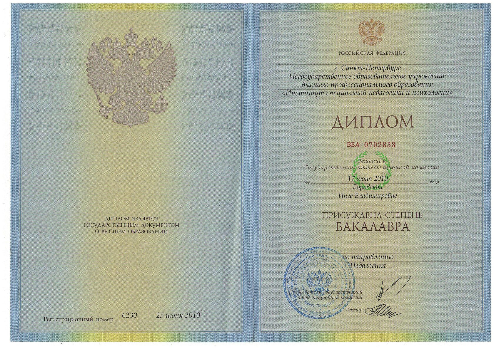 - В 2010 году окончила институт специальной психологии и педагогики, бакалавриат, специализация: психологическое сопровождение образования лиц с проблемами в развитии